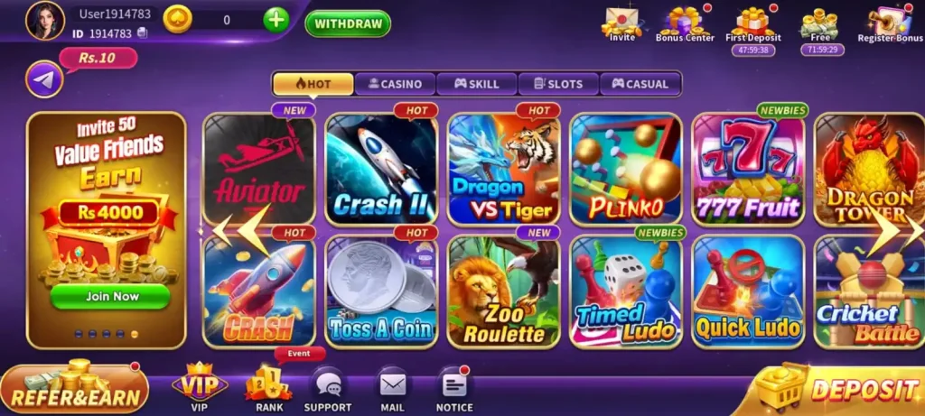The app has a simple layout that helps new users understand the system quickly. Instructions are provided for each game, making it easier to play and win.